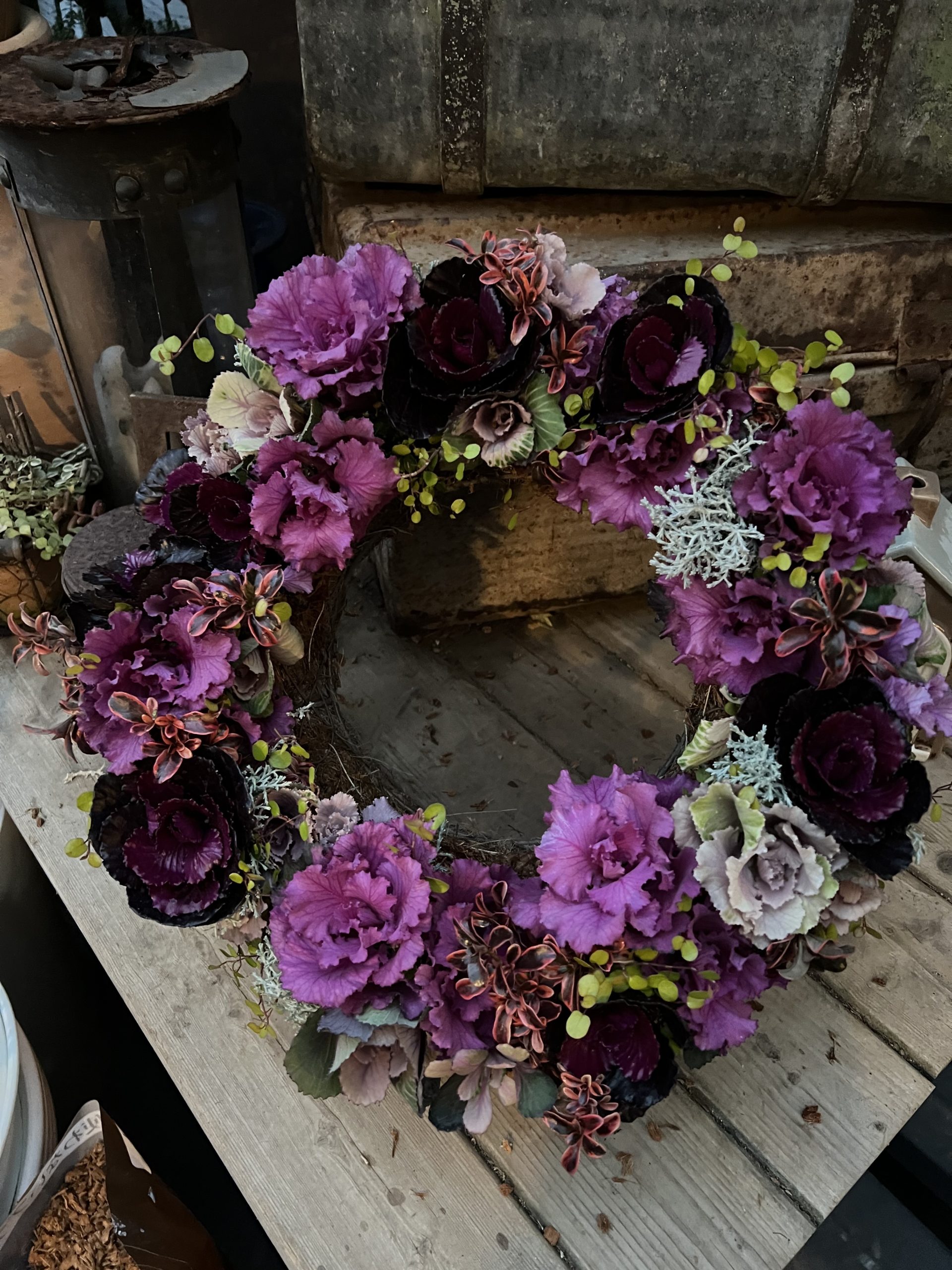 12月は ハボタンリース が一番美しく作れる季節。